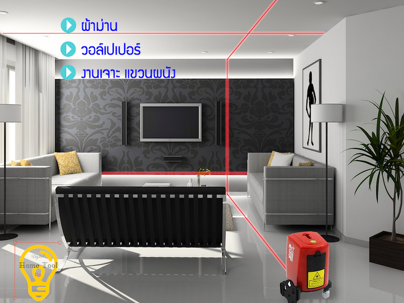 ใช้ตรวจสอบ แนวเจาะ แนวติดตั้ง ผนังเบา ระดับวงกบประตู หน้าต่าง รวมถึงงาน ยิงแนวหลุมไฟ งานฝ้า งานกระเบื้อง และงานปูพื้น