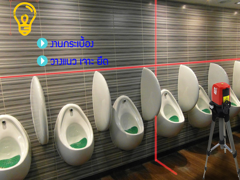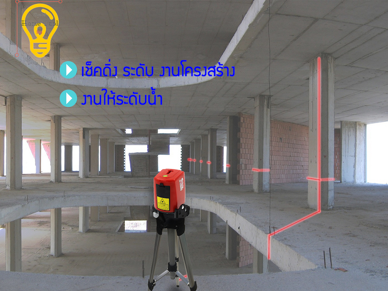 ใช้ตรวจสอบ แนวเจาะ แนวติดตั้ง ผนังเบา ระดับวงกบประตู หน้าต่าง รวมถึงงาน ยิงแนวหลุมไฟ งานฝ้า งานกระเบื้อง และงานปูพื้น